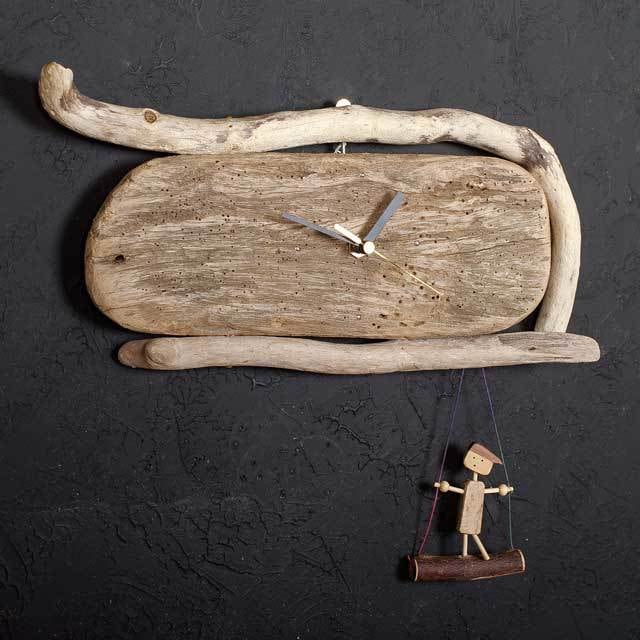 人口流木の板材(くぎ穴が付いており古の風情があります。)と枝流木を使いました。