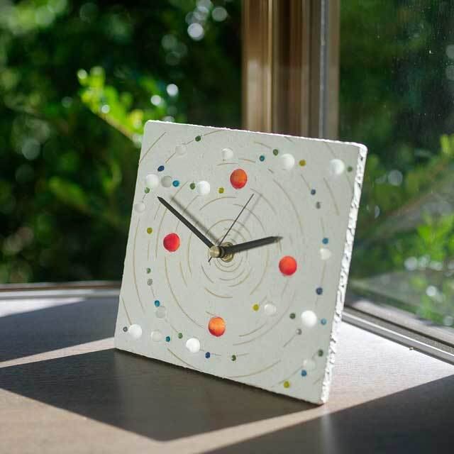 置き時計の場合、出窓や外の光が入る部屋では光がビー玉に反射して部屋の中に明るいイメージが漂います。