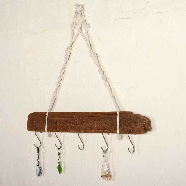 海に流れ着いた流木で作ったアイディア次第で多用途なハンガーです。