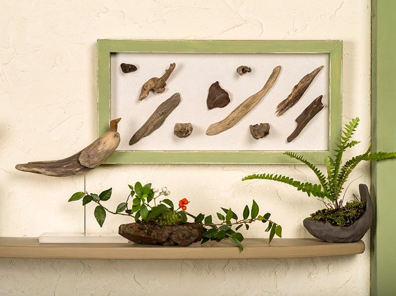 フレームの上で流木を動かし、自分のアート作品を作りながら遊べるセットです。
