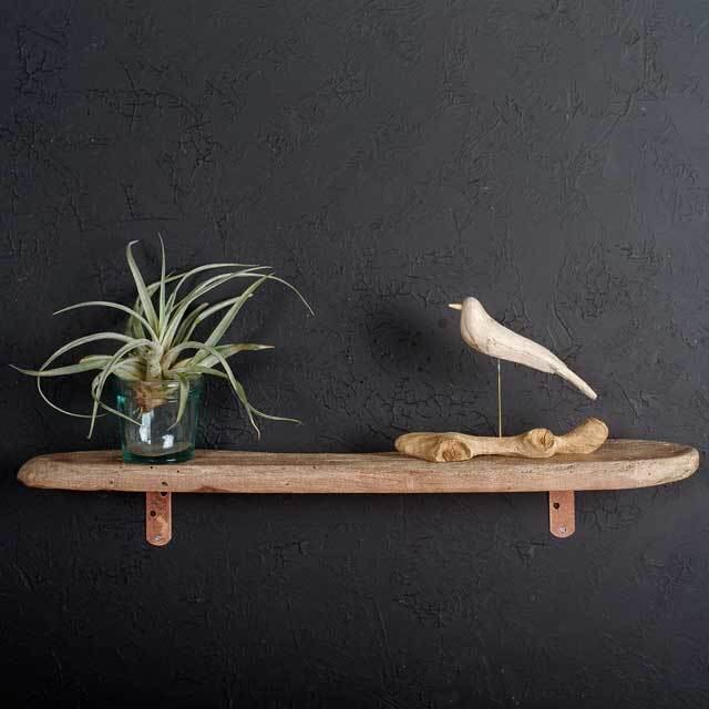 海に流れ着いた流木で作った壁掛けシェルフ飾り棚です。