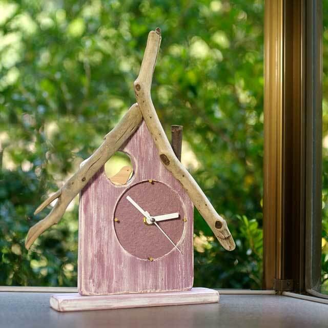ナチュラルインテリア 自然素材 ナチュラルアート ハンドメイド インテリア雑貨 流木インテリア 流木アート 流木 掛け時計 鳥 小鳥 置き時計 オーナメント