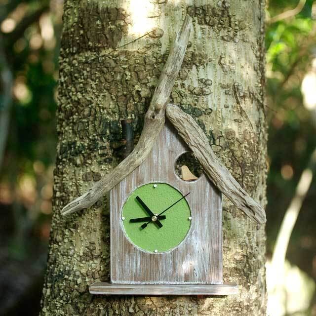 ナチュラルインテリア ハンドメイド インテリア雑貨 流木インテリア 流木アート 流木 掛け時計 鳥 小鳥 置き時計