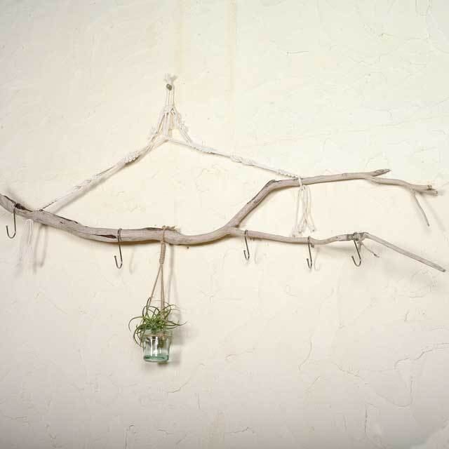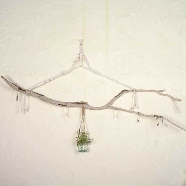 コットンのマクラメロープで流木を吊るしています。