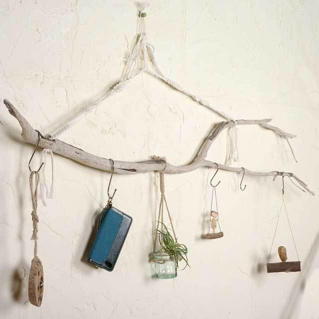 海に流れ着いた流木で作ったアイディア次第で多用途なハンガーです。