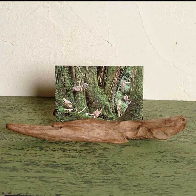 流木に2mmの切込み(20cm)を入れてオリジナルポストカード(15cm×10cm)も入るフォトスタンドです。 透明プラ板もついてます。